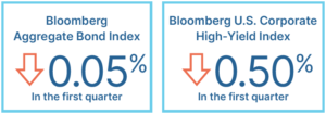 Even bonds were down in March, due to rising interest rates and inflation concerns. The 10-year Treasury yield rose from 3.97 percent at the end of February to 4.30 percent by the end of March. Short-term rates also rose notably for the month and quarter. The Bloomberg Aggregate Bond Index lost 1.76 percent in March and 0.05 percent for the quarter. The Bloomberg U.S. Corporate High Yield Index fell 1.18 percent for the month and 0.50 percent in the quarter.