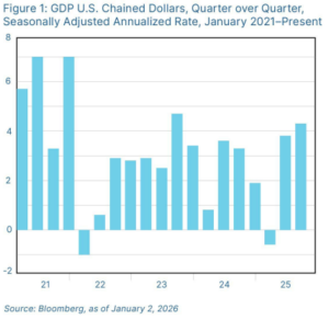 As we enter into 2026, the outlook remains constructive with caveats. Continued earnings growth and accommodative monetary policy should support markets into the new year, with the momentum from 2025 expected to carry over. With that being said, there are real risks that should be acknowledged and monitored.